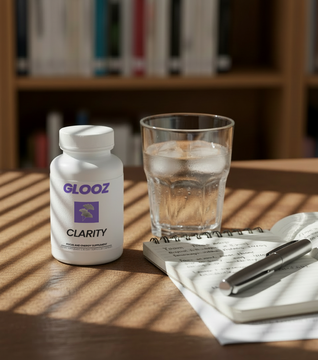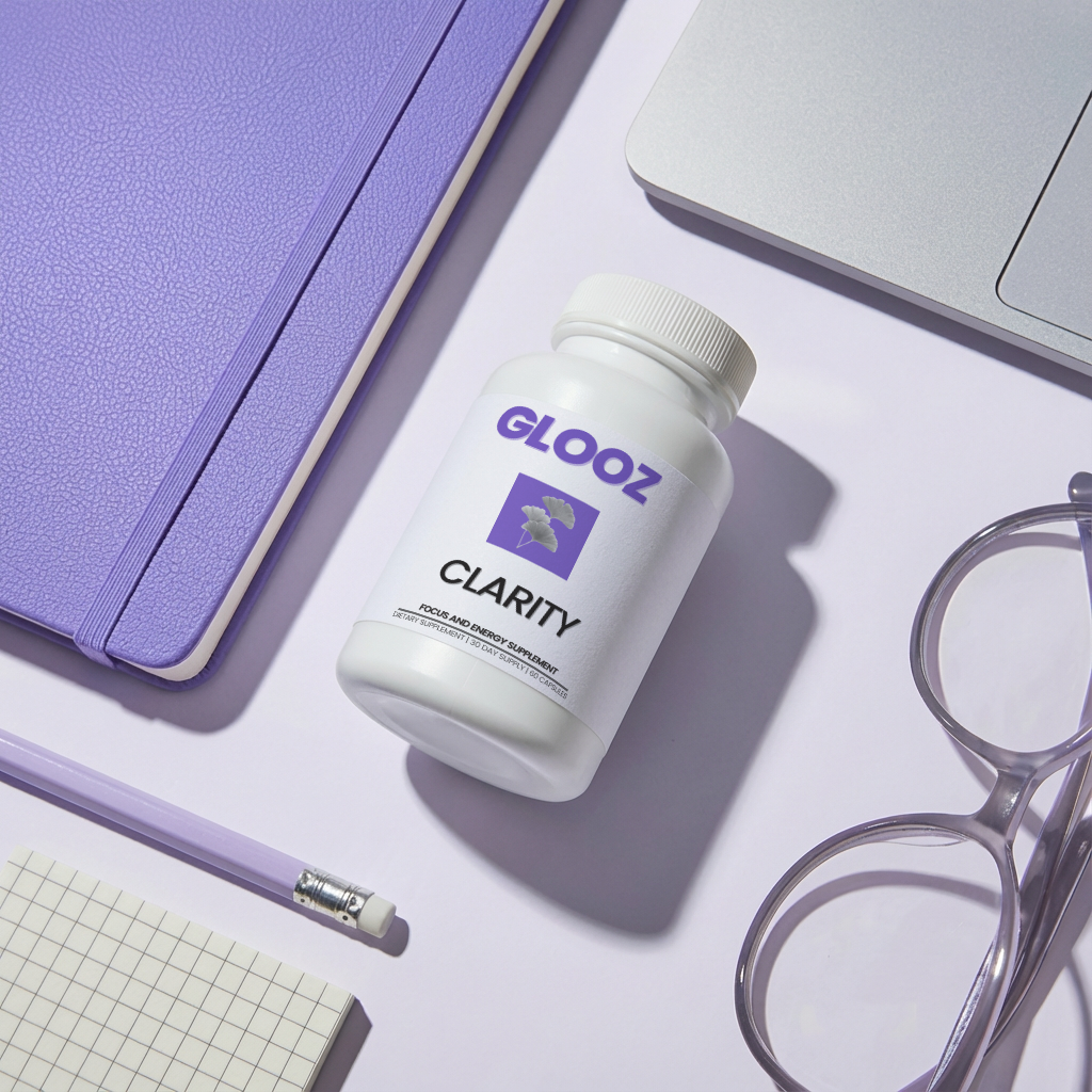 Glooz Clarity is a daily focus formula that blends Panax Ginseng and Ginkgo Biloba — two ancient herbs known to boost focus, improve memory, and support calm, steady energy without caffeine or crash.